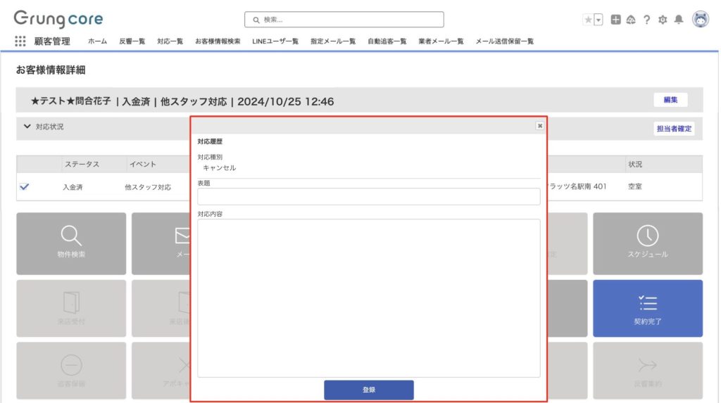 表題や対応内容(キャンセル理由など)を入力して、登録で完了です。