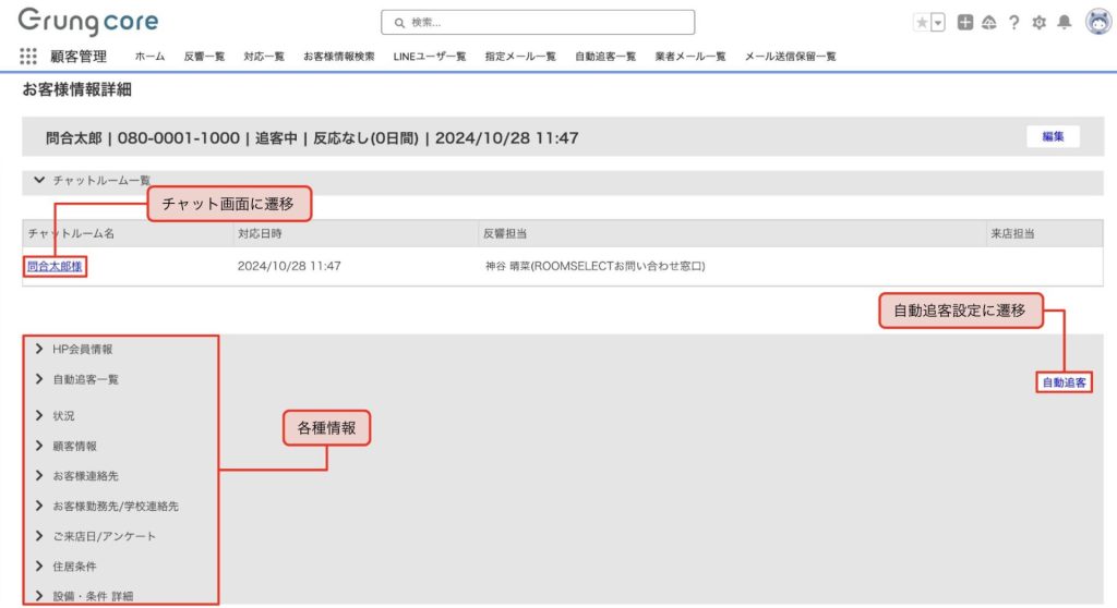 お客様情報詳細の画面を説明します。