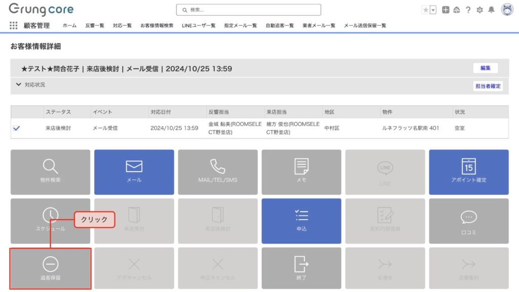 ※追客保留が解除になると「反響一覧」または「対応一覧」に表示されます。