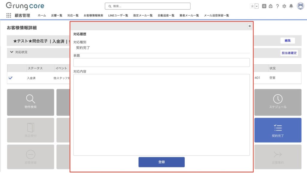 表題や対応内容を入力して、登録で完了です。