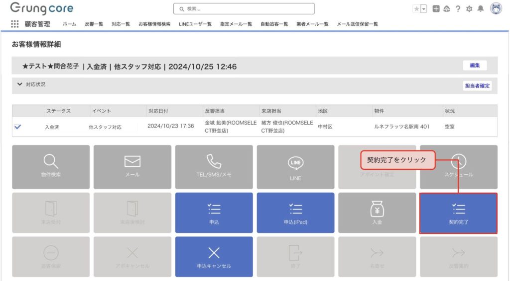 鍵渡しまで手続きが全て完了したら、ステータスを契約完了に更新します。