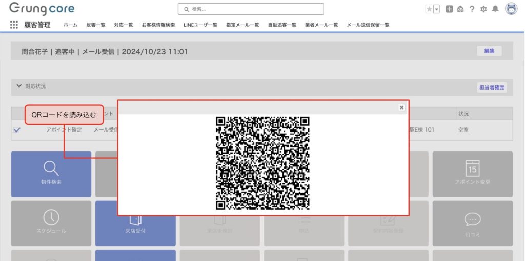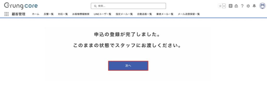 来店カードの受付が完了するとステータスが「来店済」に更新されます。