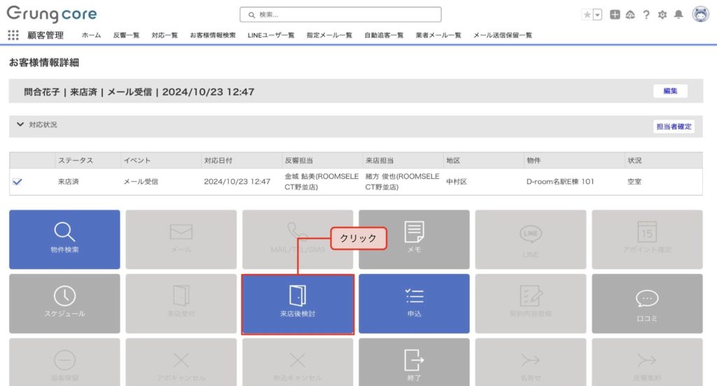 ※来店後検討に進めると次の追客アクション(メール等)が可能になります。