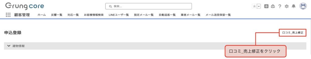 申込登録の右上にある、「口コミ_売上修正」をクリックします。