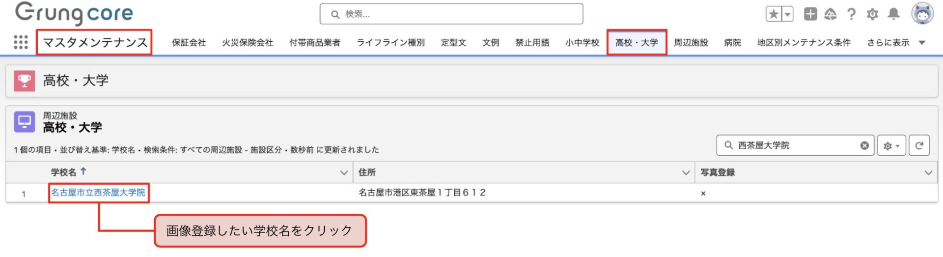 ※建物登録画面で周辺情報として取得した学校のみ、登録が可能です。