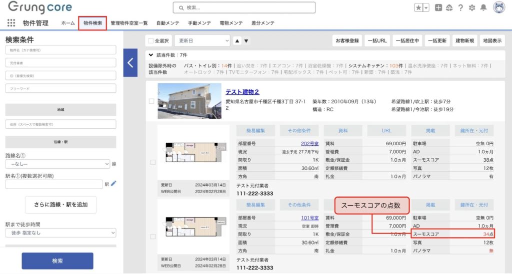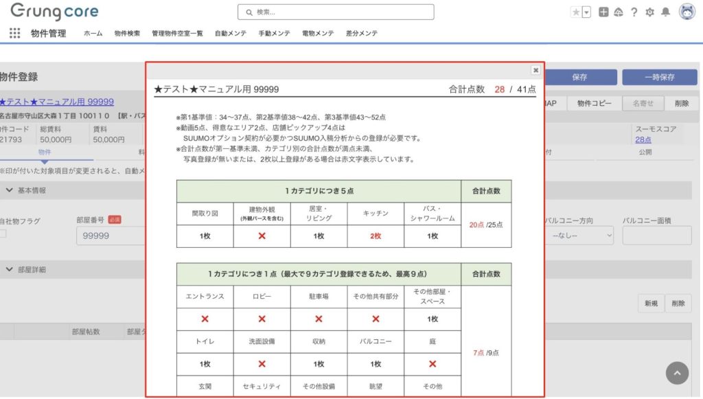 スーモスコア参考値の更新には、物件登録画面の保存が必要です。