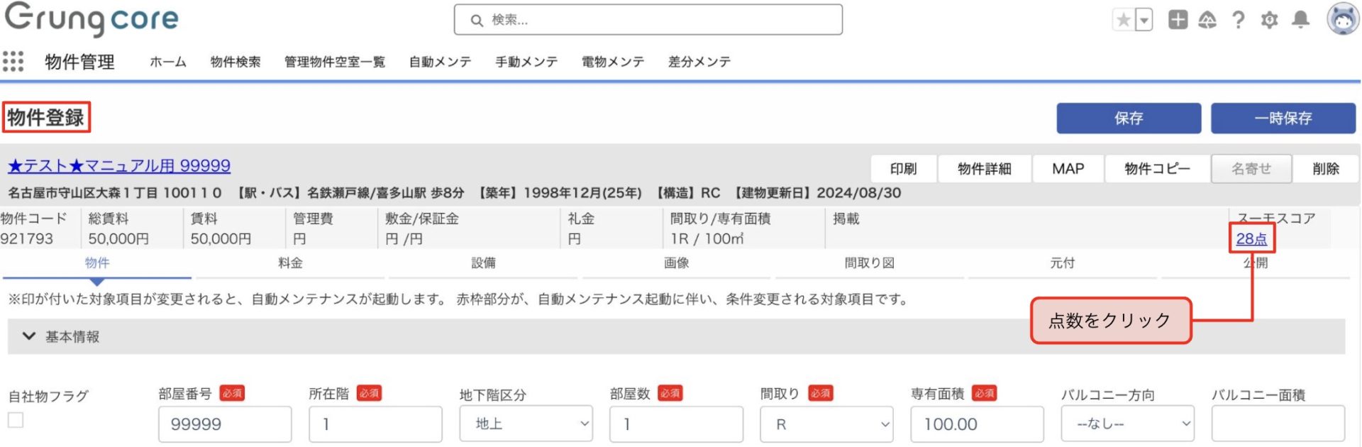 物件登録画面の「スーモスコア参考値」をクリックすると