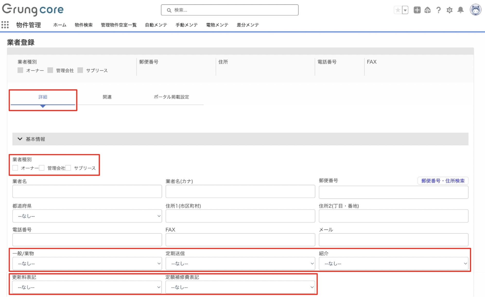 元付業者(管理会社・所有者・貸主)の登録を行います。