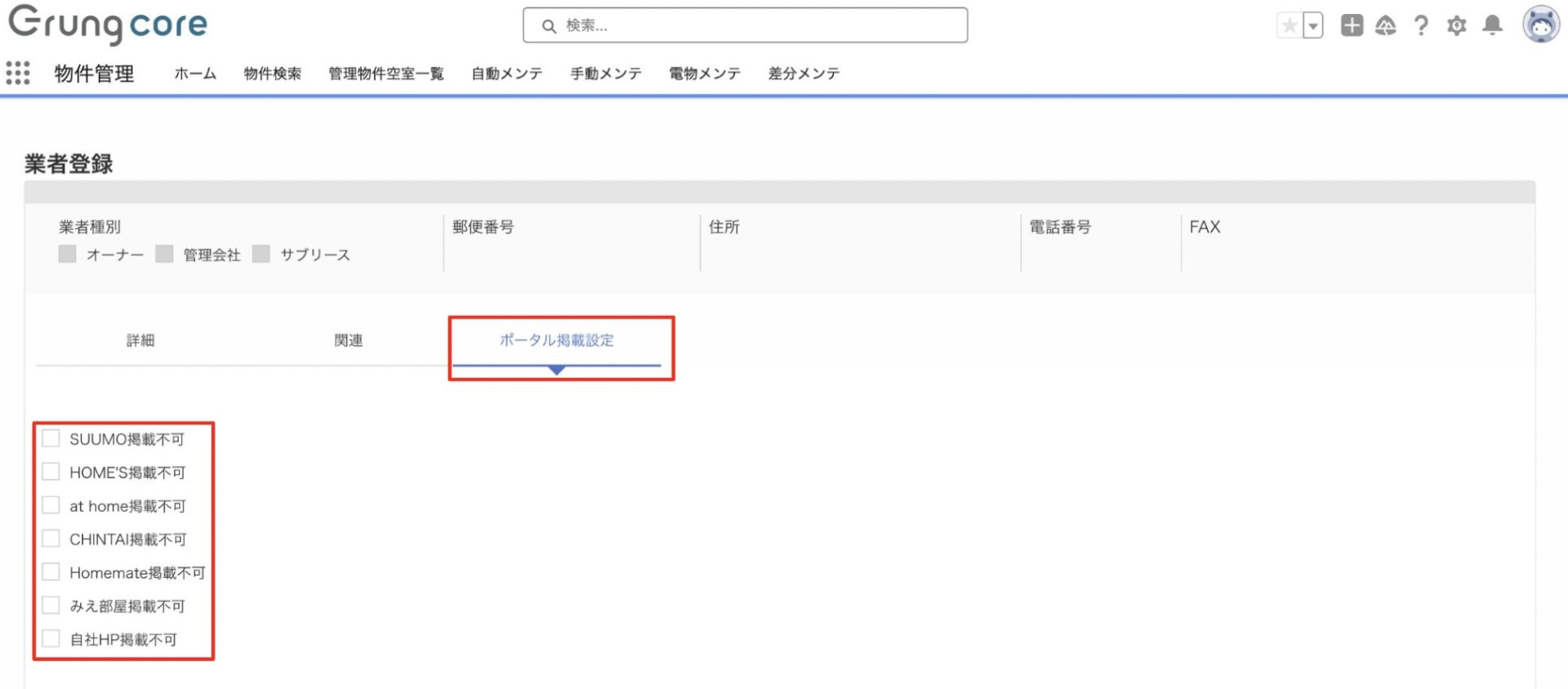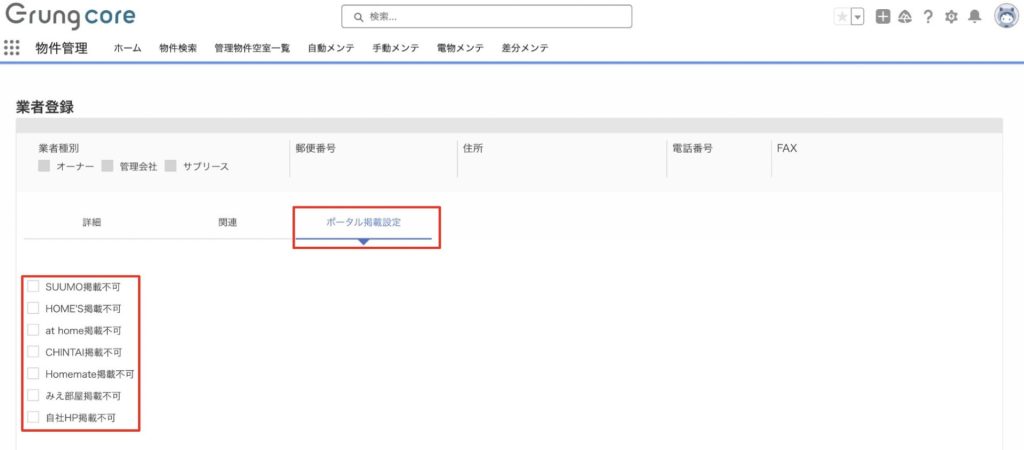 掲載可能なポータルサイトに業者からの指定がある場合は、掲載不可サイトへチェックをしてください。